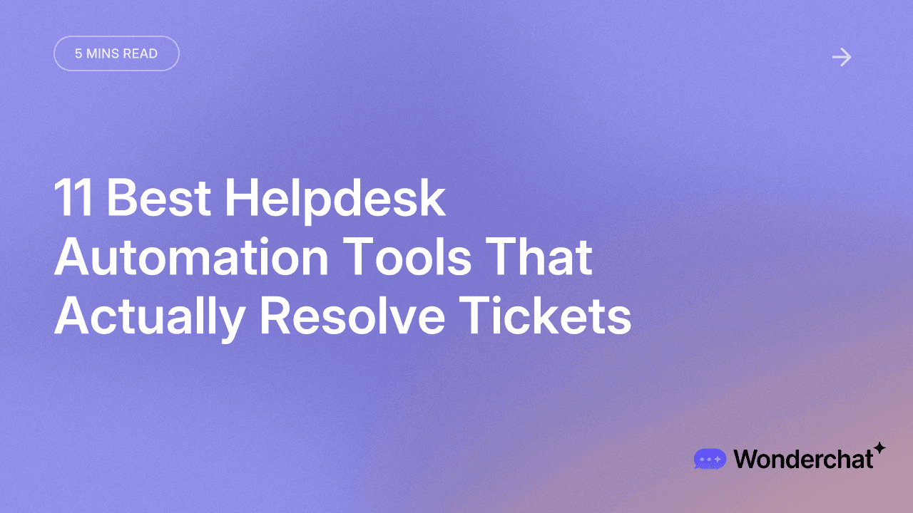 Best helpdesk automation tools ranked by resolution rate, Tier 1 deflection, and human handover quality — covering Zendesk, Freshdesk, Intercom, Wonderchat, and 7 more.