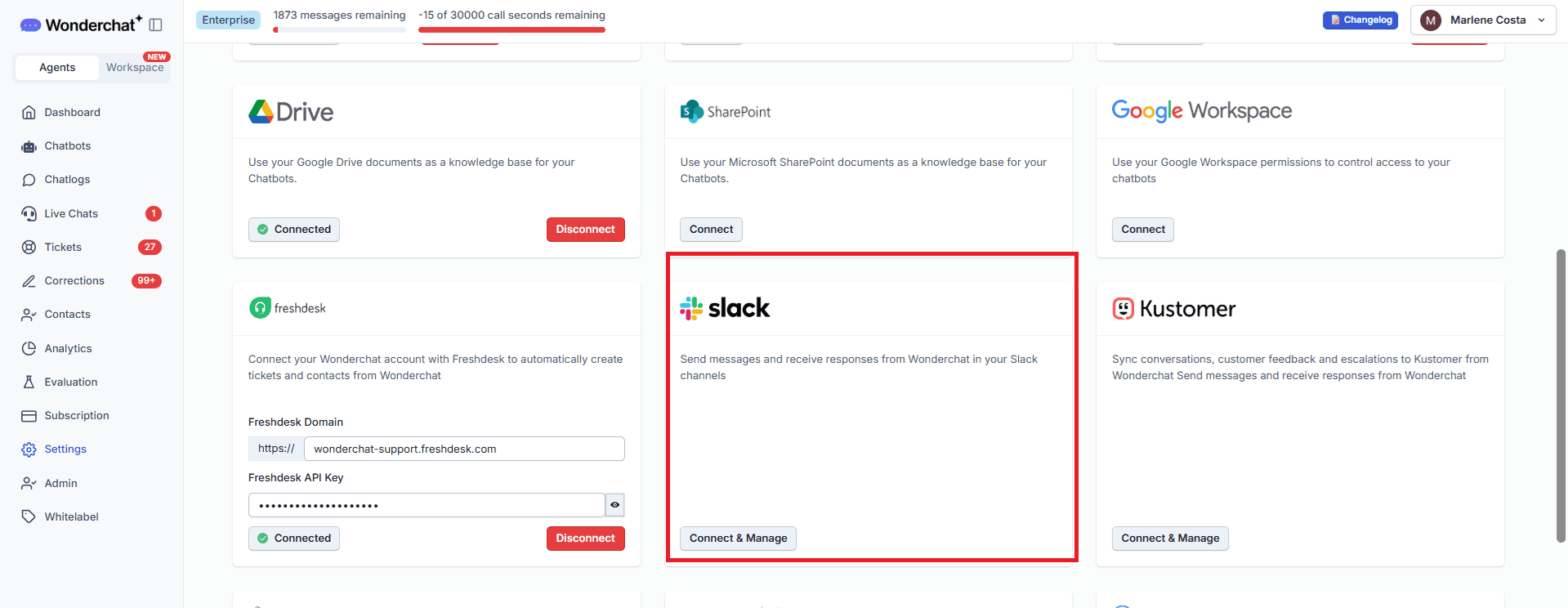 Connect Wonderchat to your Slack workspace