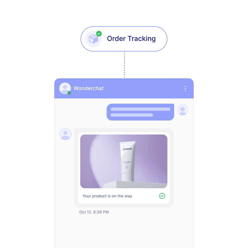 Let customers check their order status directly within the chat widget. Provide real-time updates on shipping and delivery without requiring support team intervention.