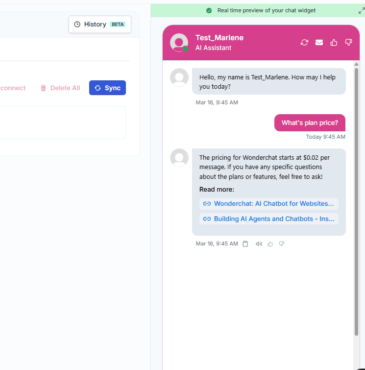 Train AI with Docs, FAQs & Policies – Upload knowledge base files and site links.